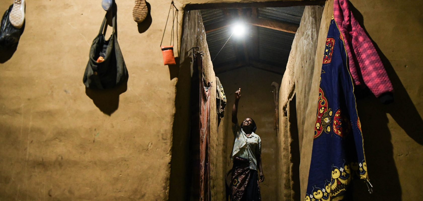 Nelia Mbewe lives with her 5-year old twin daughters Glory and Grace in Mandevu village, Malawi. Nelia used to be scared every night as the sun set. With her solar lights, Nelia and her daughters feel safe again.